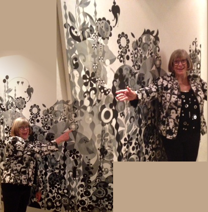 Here is the amazing wall at Alex’s Pasta Bar in Ajijic, Mexico. It is a perfect compliment to Marilyn’s jacket!