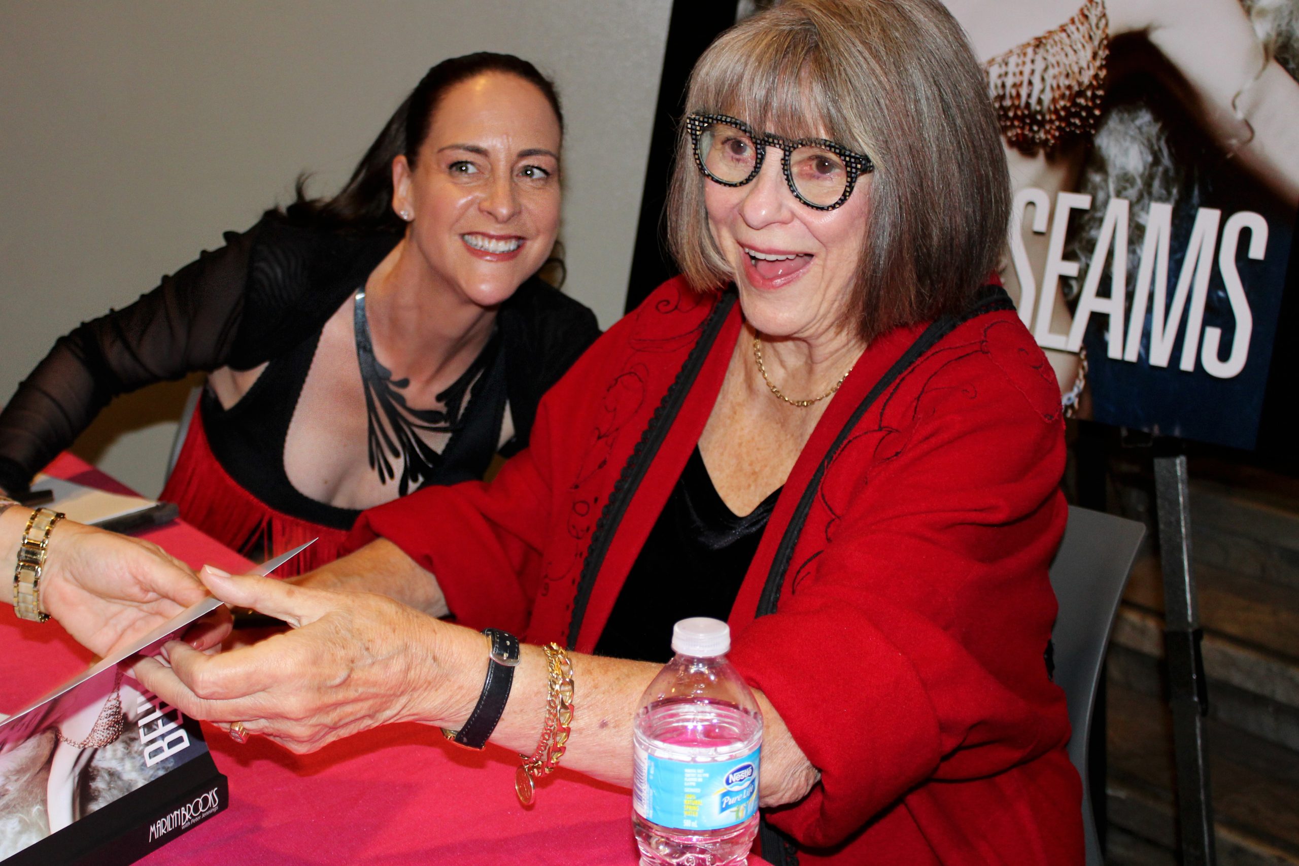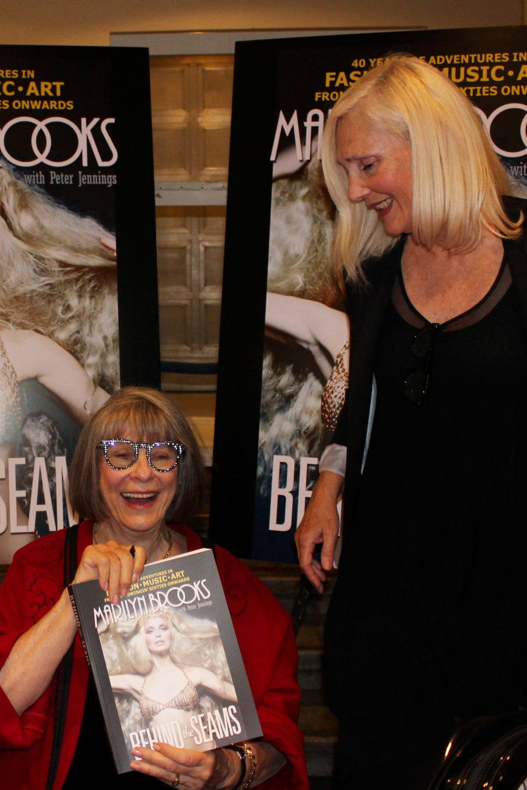 We enjoyed a full house on Sunday, October 15th at the Royal Ontario Museum as we launched the new book BEHIND THE SEAMS, 40 years of adventures in fashion, music, and art from the swinging ’60s onwards.  Written by fashion designer Marilyn Brooks with Peter Jennings, the book was well received and sales were brisk.  We enjoyed the company of many friends from years gone by. Customers, fashion designers, models, hairstylists, writers, photographers, former employees, and friends are but some of those who joined us. It was a gathering of many old, friendly faces.