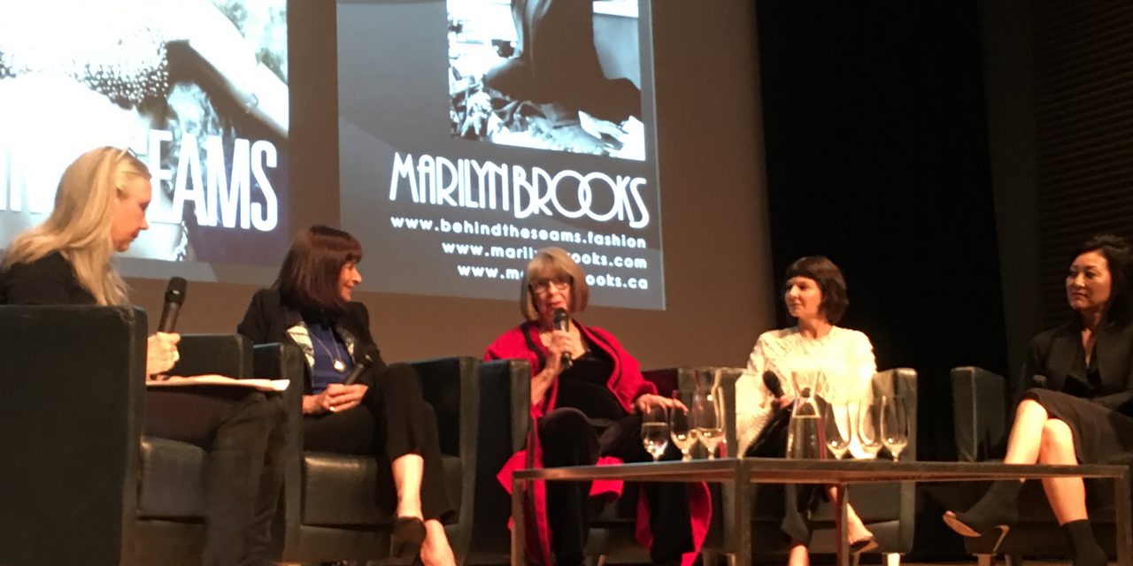 After the presentation, Marilyn was joined by Canadian television personality, fashion editor, author and newspaper columnist with the Globe and Mail, Jeanne Beker; former editor-in-chief of FASHION and former Toronto Star fashion editor, Bernadette Morra; and executive director of the Toronto Fashion Incubator, Susan Langdon. Moderated by Dr Alexandra Palmer, the panel went on to entertain the audience with candid and amusing stories about Marilyn Brooks, the Unicorn, and fashion.