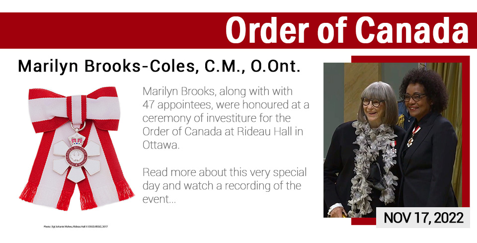 - Marilyn Brooks Order of Canada News Release June 29, 2022.