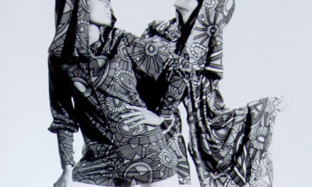 One of the Marilyn Brooks designs from the 1960s in a sheer print from Italy. Brooks visited with Paco Rabbane in Paris at his studio, they spoke Spanish and he made these extra long, light earrings for her to go with her collections. When they received the jewelry in Toronto, it sold out in minutes. It was a special moment in time.